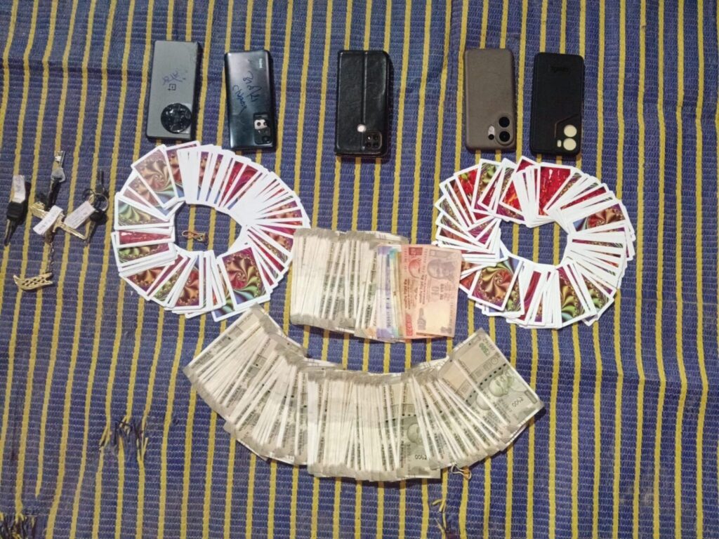 मुखबिर से मिली सूचना पर कोनी पुलिस ने देवनगर स्थित एक मकान पर दबिश दी, जहां 52 पत्ती ताश से रुपये-पैसों का दांव लगाकर जुआ खेला जा रहा था।